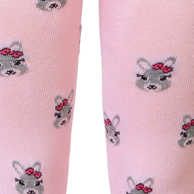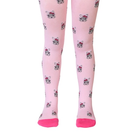 Мягкие и практичные детские колготки из дышащего хлопка с добавлением эластичных нитей, цвет розовой Колготки с мелким рисунком "зайчики". Носок и пятка уплотнены, ярко-розового цвета. На поясе эластичная резинка, есть ластовица.