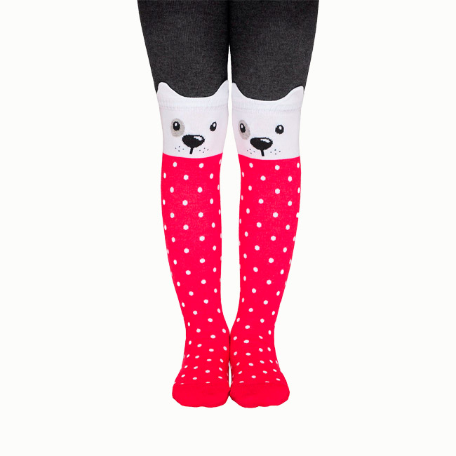 Яркие цветные детские колготки для девочек с мордочками собачек выполнены из трикотажного хлопка с добавлением полиамида и эластана. Хлопок хорошо впитывает влагу, обеспечивает дыхание кожи, не вызывает аллергических реакций. Колготки плотно прилегают к телу, при этом не сковывают движений и не сползают. На поясе эластичная резинка. Они станут великолепным дополнением к какому-нибудь хореографическому ансамблю, костюму для выступлений, оригинальному праздничному наряду.
