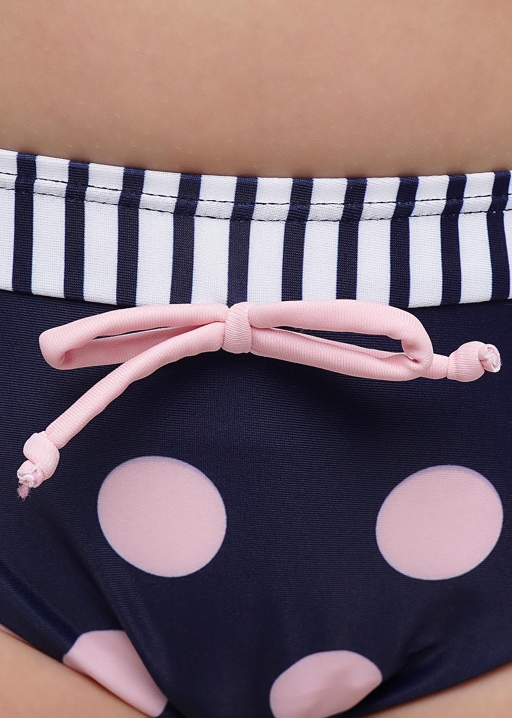 Стильный купальник бикини в комбинации набивных рисунков.Верхняя часть - актуальный топ с американской проймой, частично с подкладом.Бретель с регулировкой. Бикини с отделочным поясом и бантиком, ластовица с подкладом