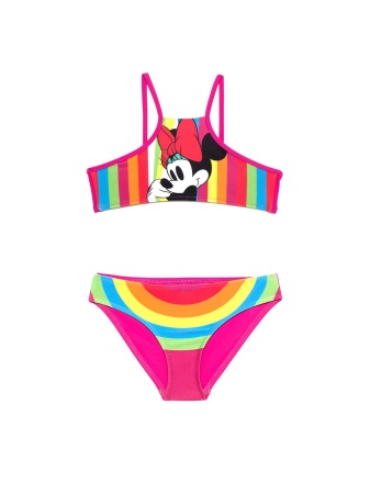 Костюм купальный для девочки из эластичного трикотажного полотна. Топ фиксируется по плечам регулируемыми бретелями. Трусы купальные классические.