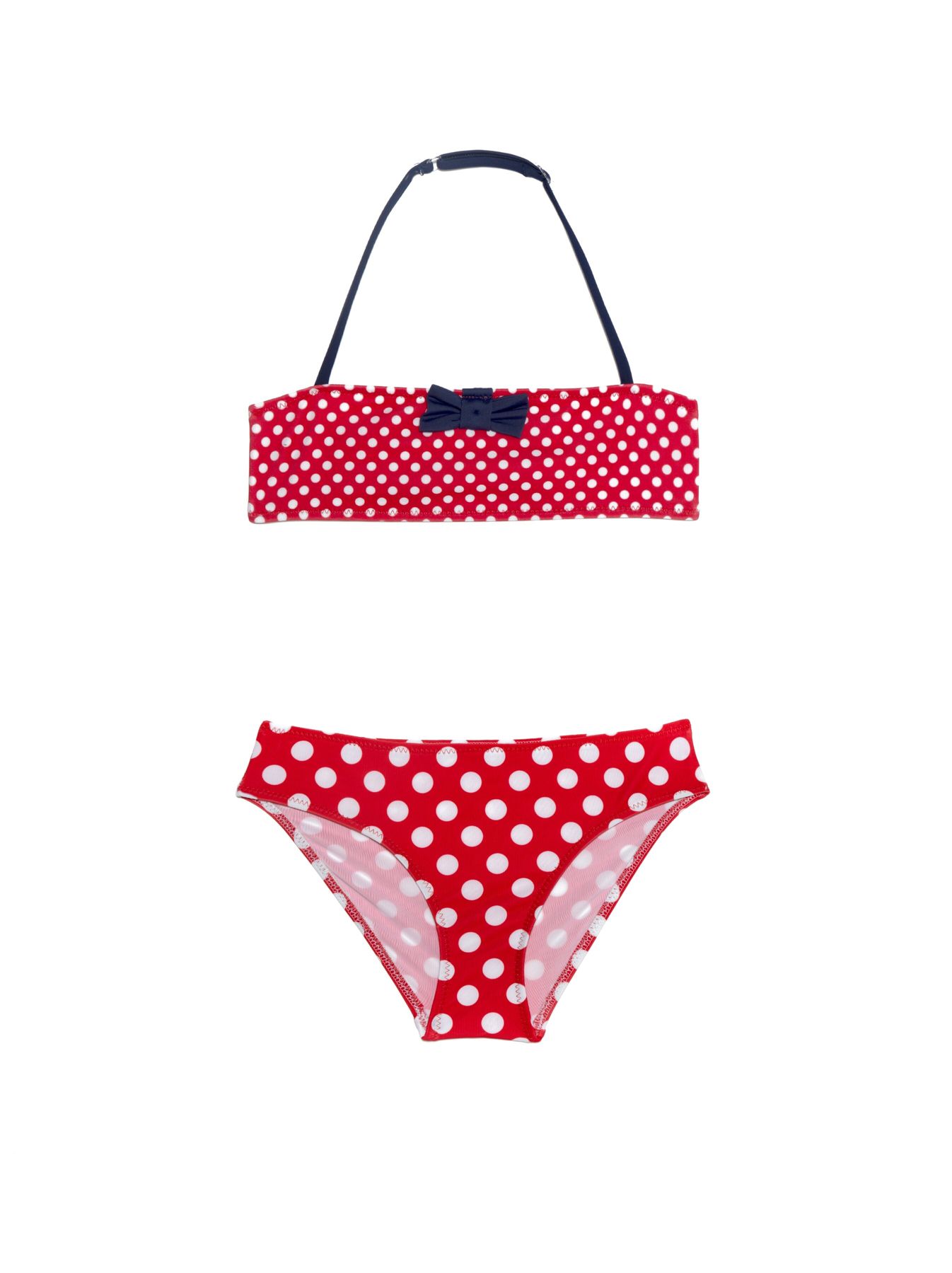 Купальный костюм для девочки из эластичного трикотажного полотна. Топ фиксируется узкой бретелью за шею. Трусы купальные классические.