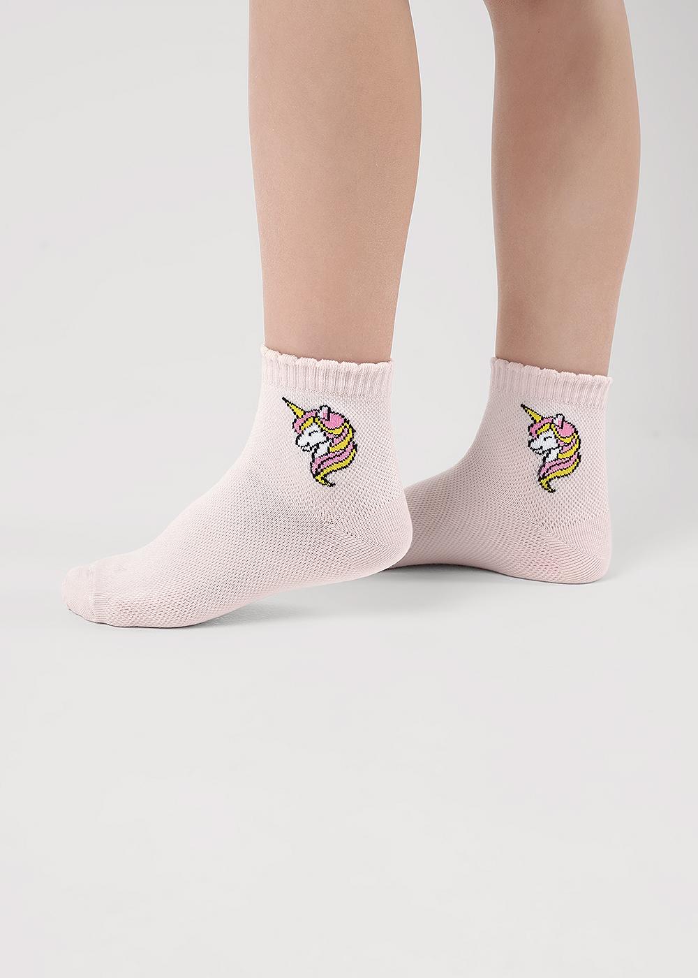 Облегченные носки плетение сетка для девочки с рисунком единорога на паголенке.