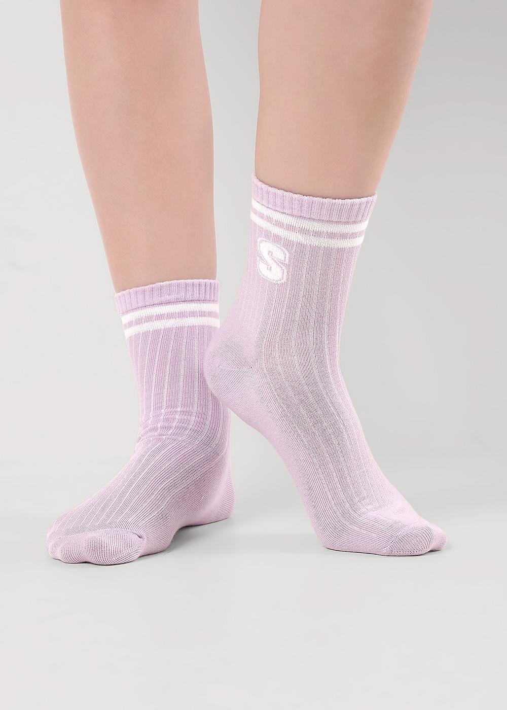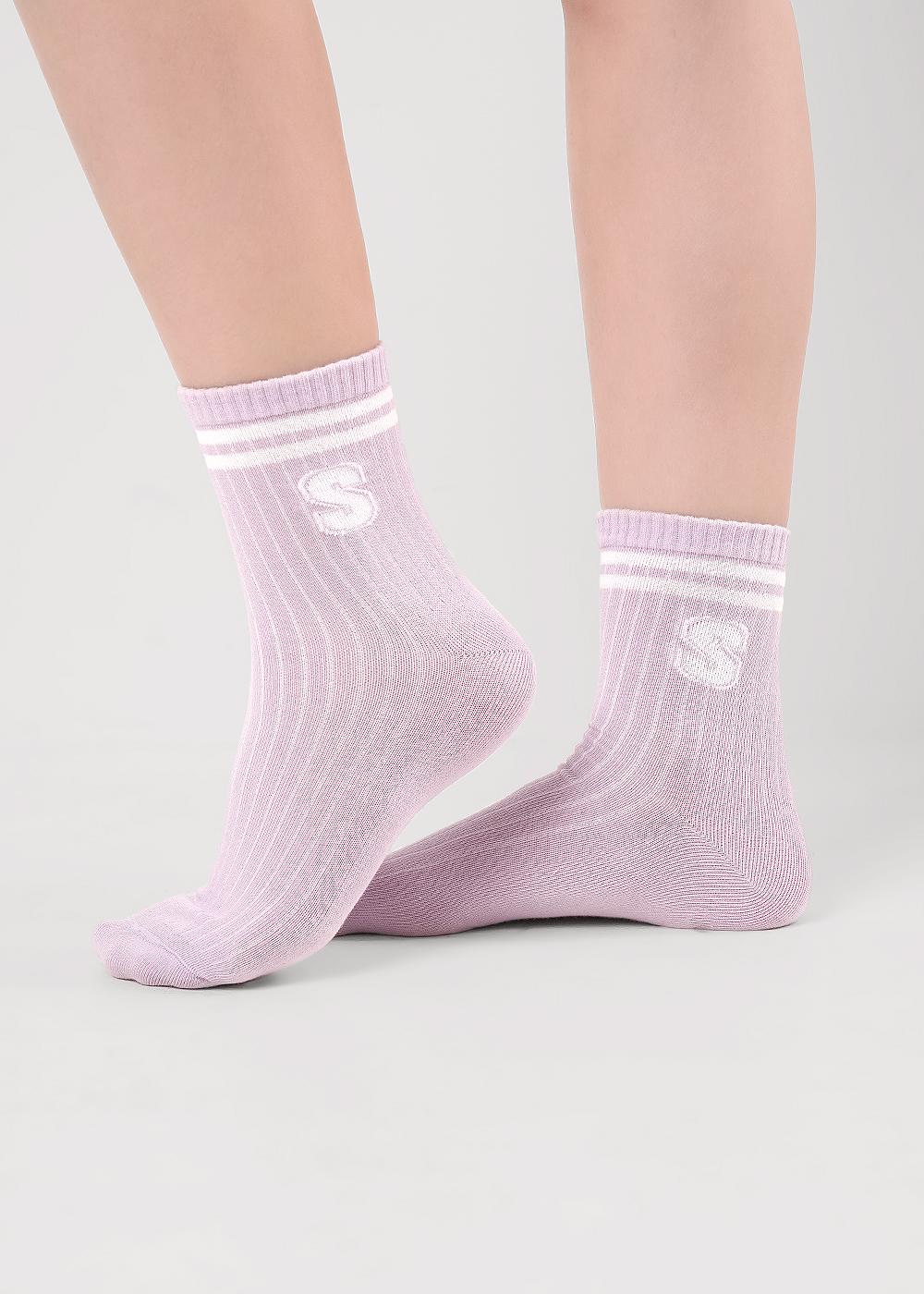 Носки для девочки в лапшу с полосками на паголенке и буквой S.