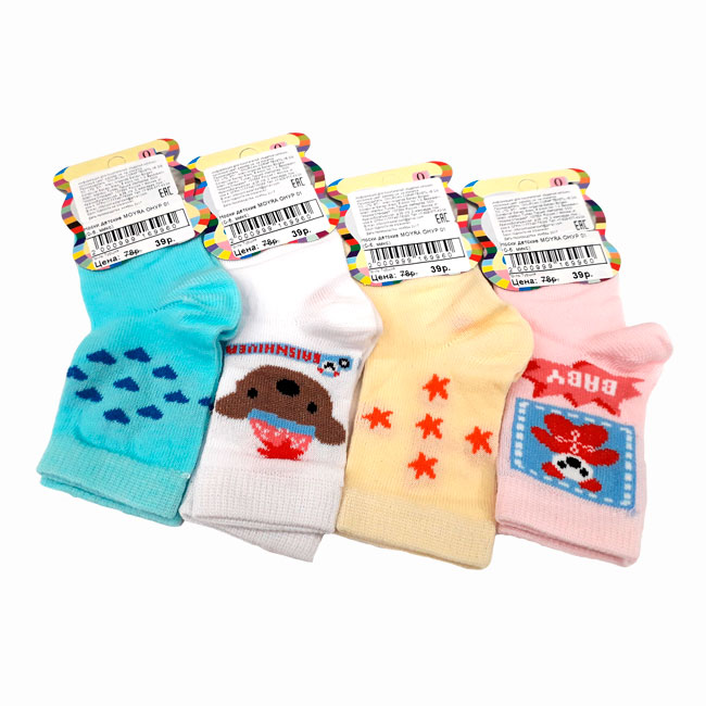 Детские носки для девочек и мальчиков выполнены из эластичного мягкого полотна с добавлением хлопка. Носки разноцветные, с забавными тематическими принтами. Комфортная, мягкая резинка на голени. Возраст 0-6 месяцев, 1 и 3 года. Цена указана за одну позицию. В заказах через интернет-магазин указывайте цвет изделия.