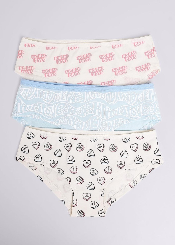 Комплект трусов для девочки из хлопка с эластаном. Классическая модель дополнена резинкой по талии и ножке для обеспечения комфорта при движении. Стильная линеарная графика и шрифтовые принты подарят хорошее настроение и уверенность на целый день!.Цена указана за одну позицию. При заказе через интернет-магазин указывайте в комментариях цвет изделия.