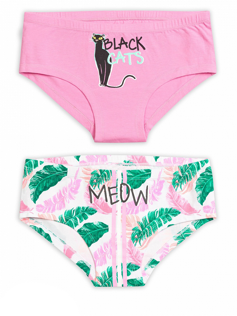 Трусики-шортики для девочек. Принт в стиле неоновых джунглей. Перевод надписей в принте Мяу и Чёрные кошки. Цена указана за одну позицию. При заказе через интернет-магазин указывайте в комментариях цвет изделия.