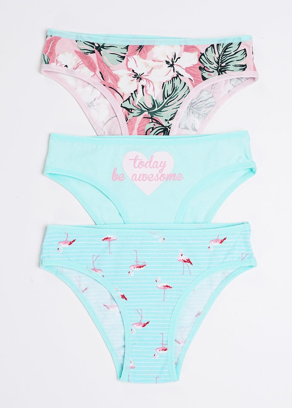 Комплект трусов для девочки классической формы из хлопка . По талии и ножке резинка. Спереди украшены принтами в природной тематике .