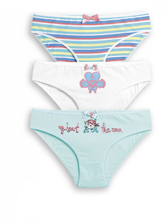 Детские трусы для девочек с набивным или принтованным рисунком. На поясе декоративный бантик.
