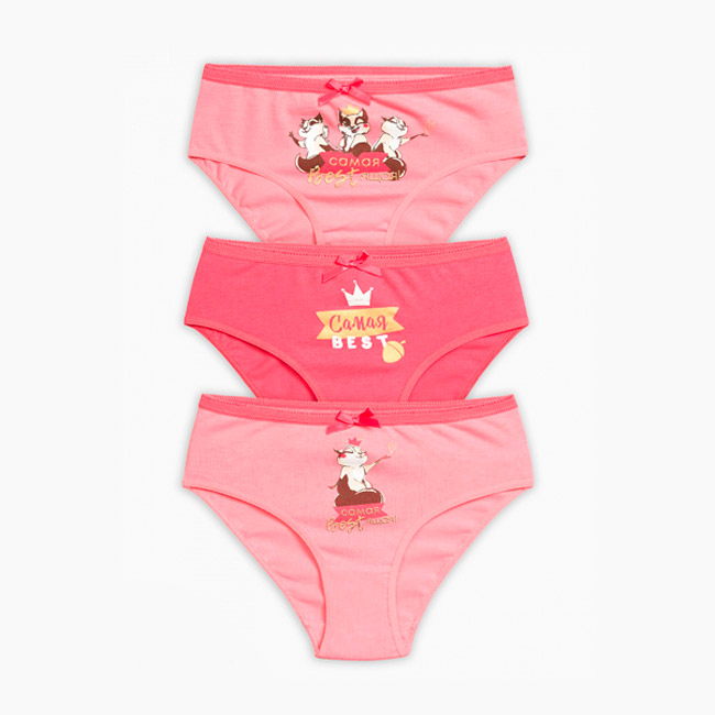 Трусы-слипы для девочек из трикотажного хлопка, однотонные или с набивным тематическим рисунком. Цвета: малиновый/розовый. Трусики декорированы аккуратным бантиком. По талии мягкая и эластичная резинка. Цена указана за одну позицию. При заказе через интернет-магазин указывайте цвет изделия.