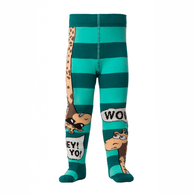 Мягкие и эластичные колготки из натурального хлопка с тематическими оригинальными рисунками. Колготки темно-бирюзового цвета, в полоску, носок и пятка контрастного цвета. Удобные и комфортные колготки из хлопка подарят комфорт в течение всего дня. Для девочек и мальчиков.