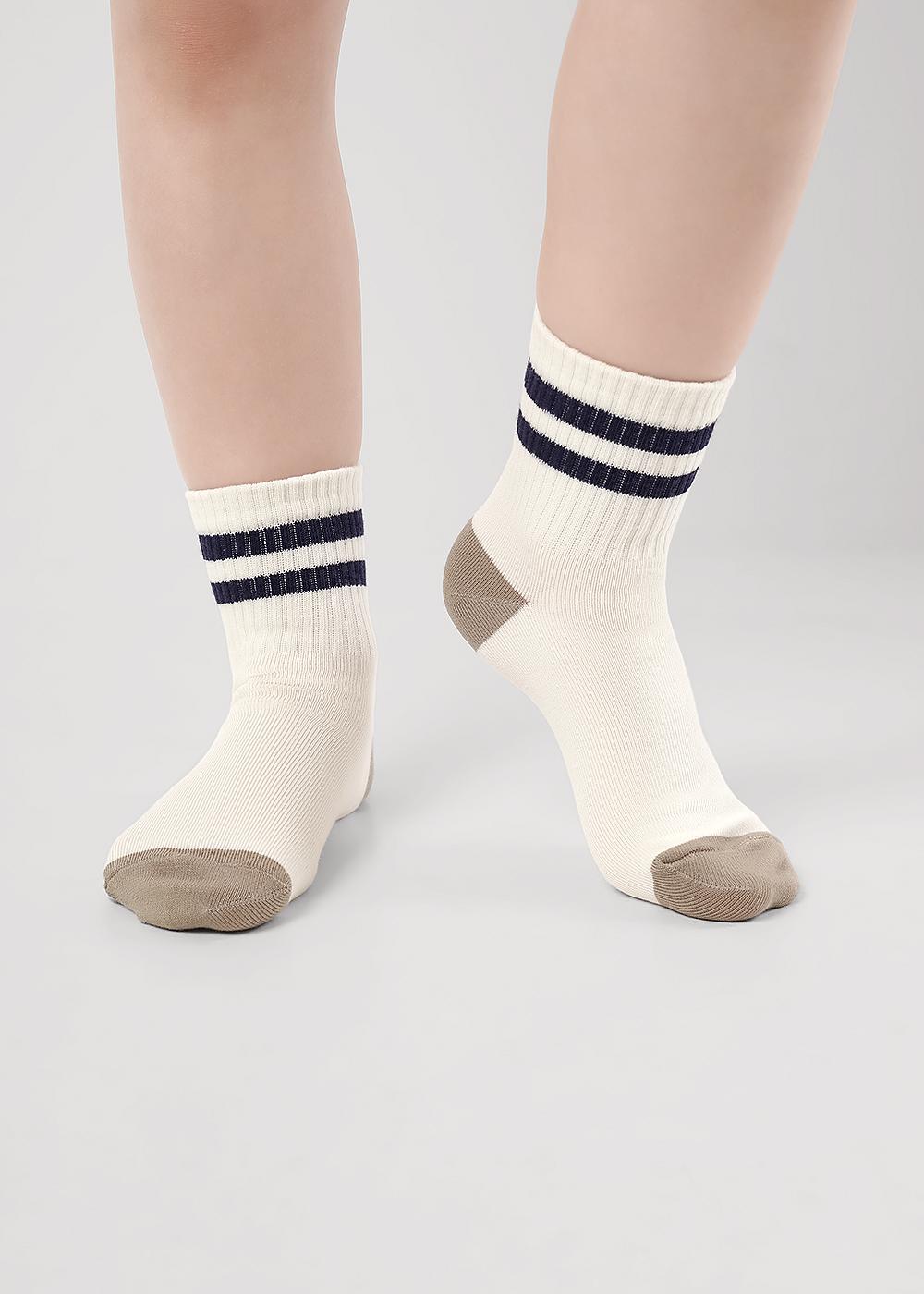 Носки для мальчика с выделенными пяткой и мыском, с двумя полосками по резинке.