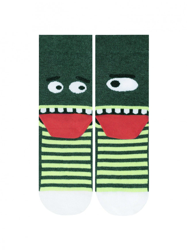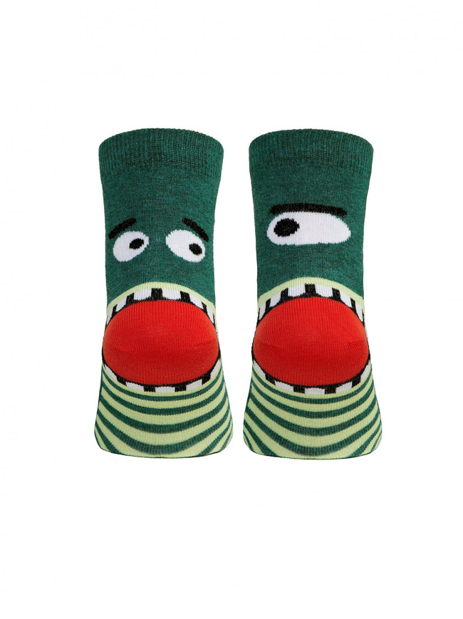 Яркие носки для мальчиков из однотонного хлопка с тематическим ярким принтом и полосками на стопе. Модель удлиненная. На голени эластичная цветная резинка. Носок и пятка контрастного цвета.