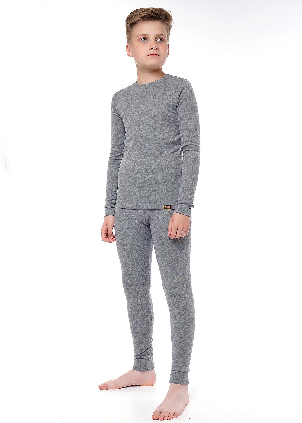 Термокомплект из плотного трикотажного полотна с небольшим начесом изнутри, двухпредметный: кальсоны, плотнооблегающие ногу, и джемпер небольшого объема. Удобен в холодное время года.