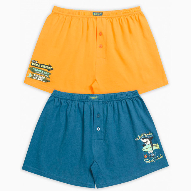 Детские трусы-боксеры для мальчиков выполнены из натурального однотонного хлопка оранжевого или темно-синего цвета. Трусы комфортной посадки, декорированы тематическим принтом и планкой с пуговицами. На поясе комфортная резинка и фирменный логотип. При заказе через интернет-магазин указывайте цвет изделия.