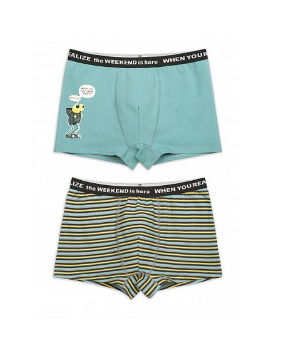 Трусы шорты для мальчиков.По талии широкий тканый эластик с вытканным вкруг текстом.Прочный принт.Декоративная обработка в области гульфика.Цена указана за одну позицию. При заказе через интернет-магазин указывайте в комментариях цвет изделия.