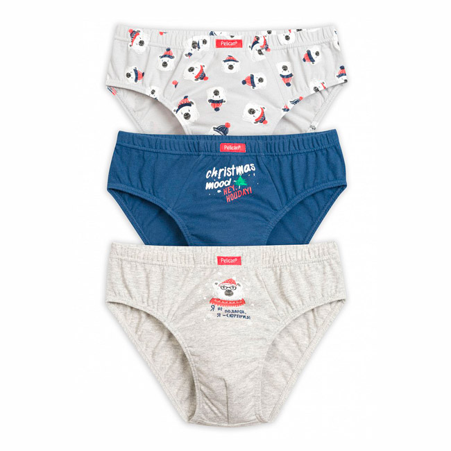 Трусы-слипы для мальчиков из трикотажного хлопка, однотонные или с набивным рисунком. Тематика принта: новогодние мишки. Цена указана за одну позицию. При заказе через интернет-магазин указывайте цвет изделия.