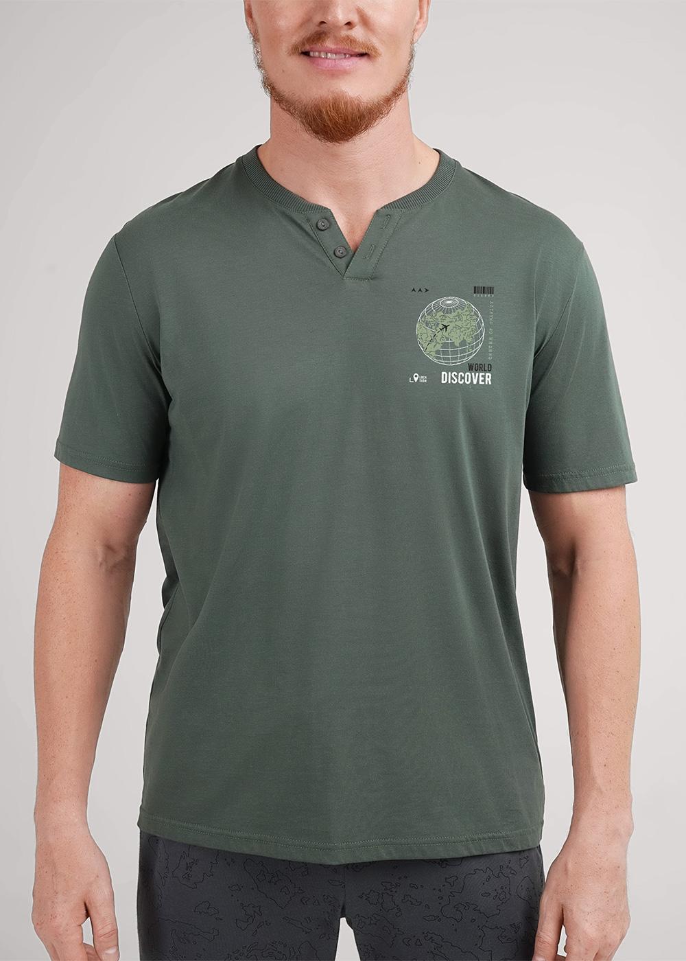 Футболка мужская с коротким рукавом и фигурной горловиной, из дышащего хлопкового полотна. Оригинальность модели придаёт авторский принт. Создай свой стильный образ вместе с домашней футболкой clever.