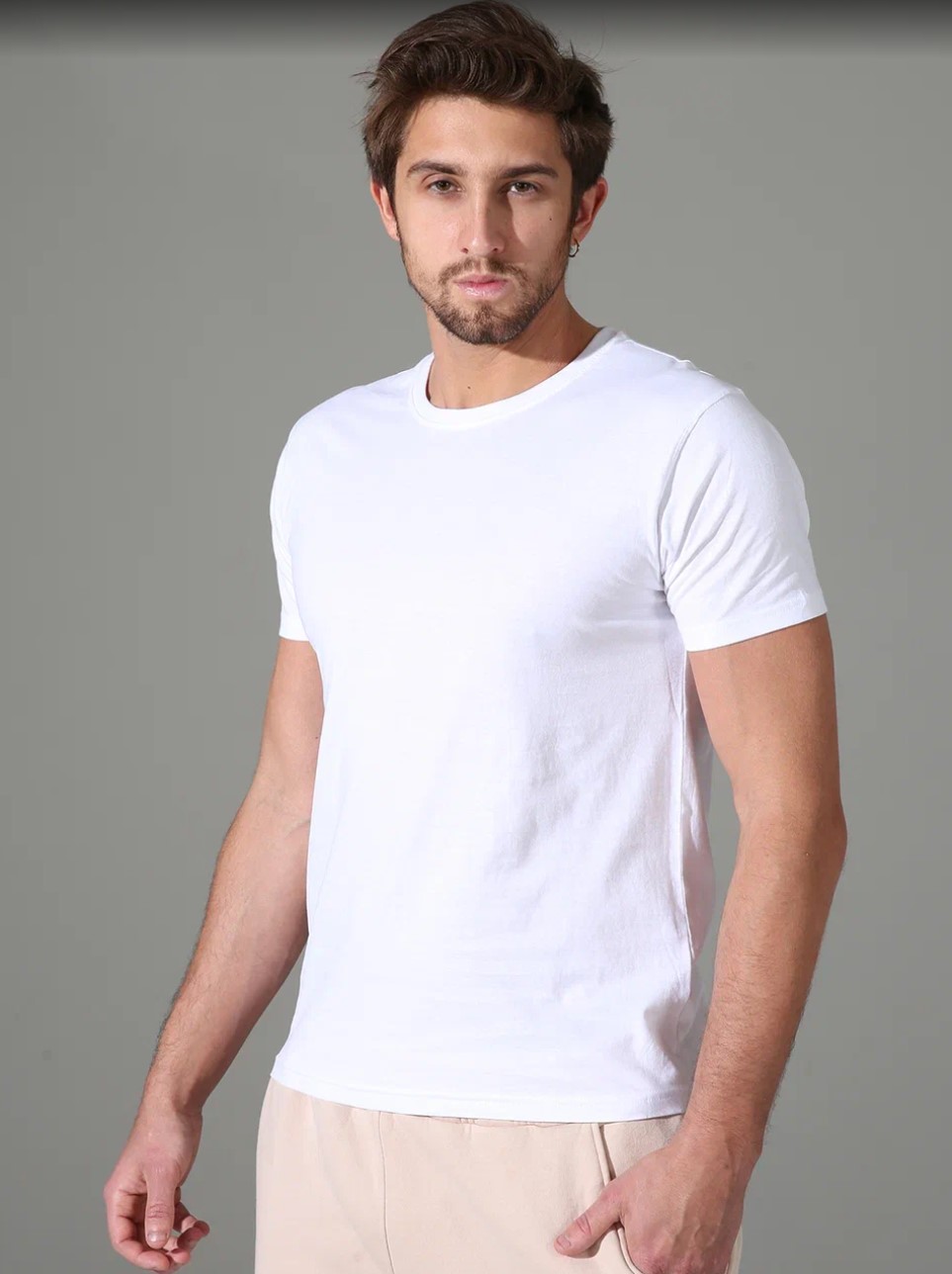 Мужская футболка, белая с коротким рукавом и круглым вырезом. Модель выполнена из качественной ткани, состав хлопок 100%.