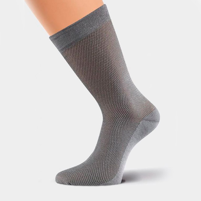 Классические мужские носки из тонкой однотонной сетки. Модель удлинённая. Носок и пятка уплотненные, на голени эластичная резинка.