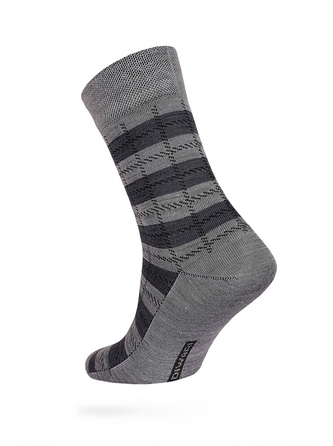Комфортные теплые мужские носки из шерстяной пряжи, с двойной анатомической резинкой, с рисунками, в полоску.