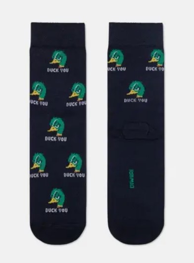 Всесезонные эластичные мужские носки из хлопка, с двойной анатомической резинкой, с рисунками с необычными цветовыми акцентами.