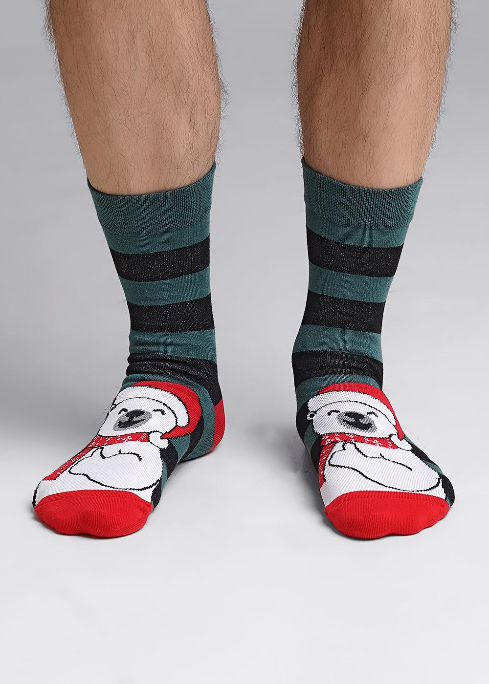 Новогодние мужские носки (гладь) Новогодний снеговик