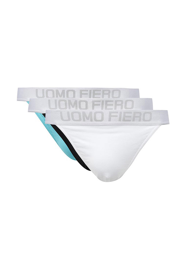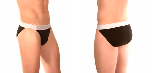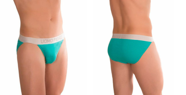 Мужские трусы, модель танга из однотонного хлопка с серебристой, широкой резинкой на поясе. На резинке фирменный принт.