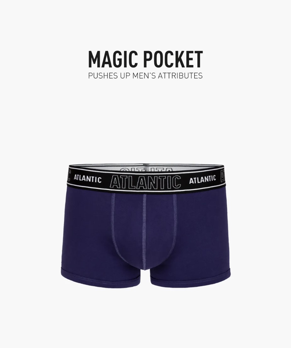 Нижнее белье линии Magic Pocket с инновационным дизайном - это определенно MUST HAVE в гардеробе каждого мужчины. Мужские однотонные трусы-шорты MH-1191/01 от польского бренда Atlantic на каждый день: превосходно подойдут абсолютно любому мужчине как для повседневной носки, так и для занятий спортом. Спортивный крой этой модели гарантирует идеальную посадку по фигуре и максимальный комфорт. Внешняя пришивная резинка не давит, не скручивается и не натирает при носке.