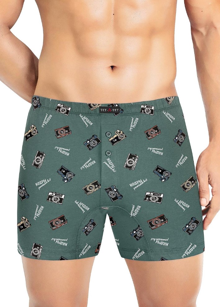 Боксеры свободной посадки оформлены авторской набивкой. Трусы дополнены пуговицами и имиджевым логотипом.