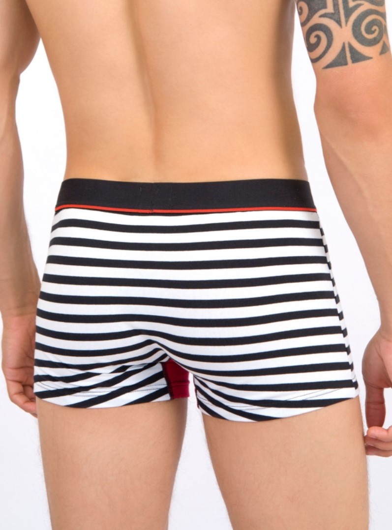 Мужские трусы от торговой марки Индефини. Трусы-боксеры из хлопка, белого цвета, с принтом в полоску, со вставками красного цвета, на мягкой резинке.