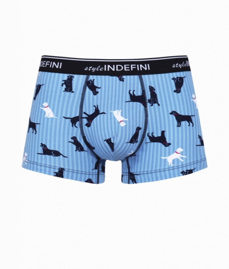 Мужские трусы от торговой марки Индефини. Трусы-боксеры из хлопка, синего цвета, с принтом, с принтом в полоску, на мягкой резинке.