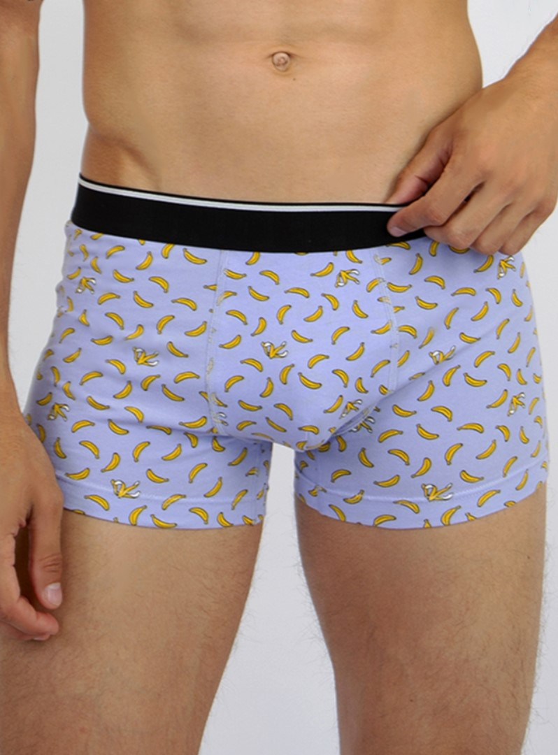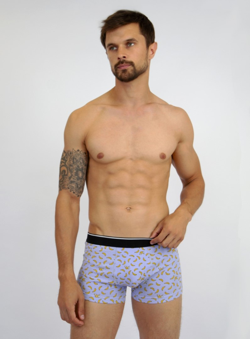 Мужские трусы от торговой марки Индефини. Трусы-боксеры из хлопка, сине-фиолетового цвета, с принтом, на мягкой резинке.