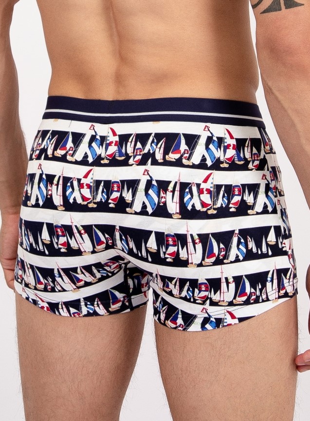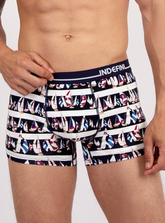 Мужские трусы от торговой марки Индефини. Трусы-боксеры из бамбука и хлопка, сине-белого цвета с принтом, на мягкой резинке.