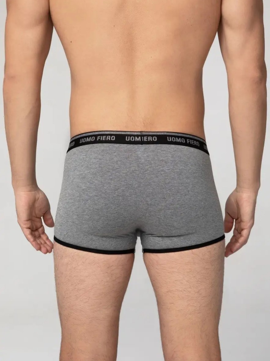 Трусы мужские боксеры из хлопка с добавлением эластана и контрастными элементами. Мягкая резинка с логотипом бренда UOMO FIERO обеспечивает идеальную посадку данной модели и комфорт во время носки. Хлопок приятен к телу. Эластан обеспечивает комфортное облегание и снижает изнашиваемость изделия. Подойдут для повседневной носки и для занятий спортом. Плавки отлично сохраняют форму и цвет после многочисленных стирок. Удобные и очень комфортные.