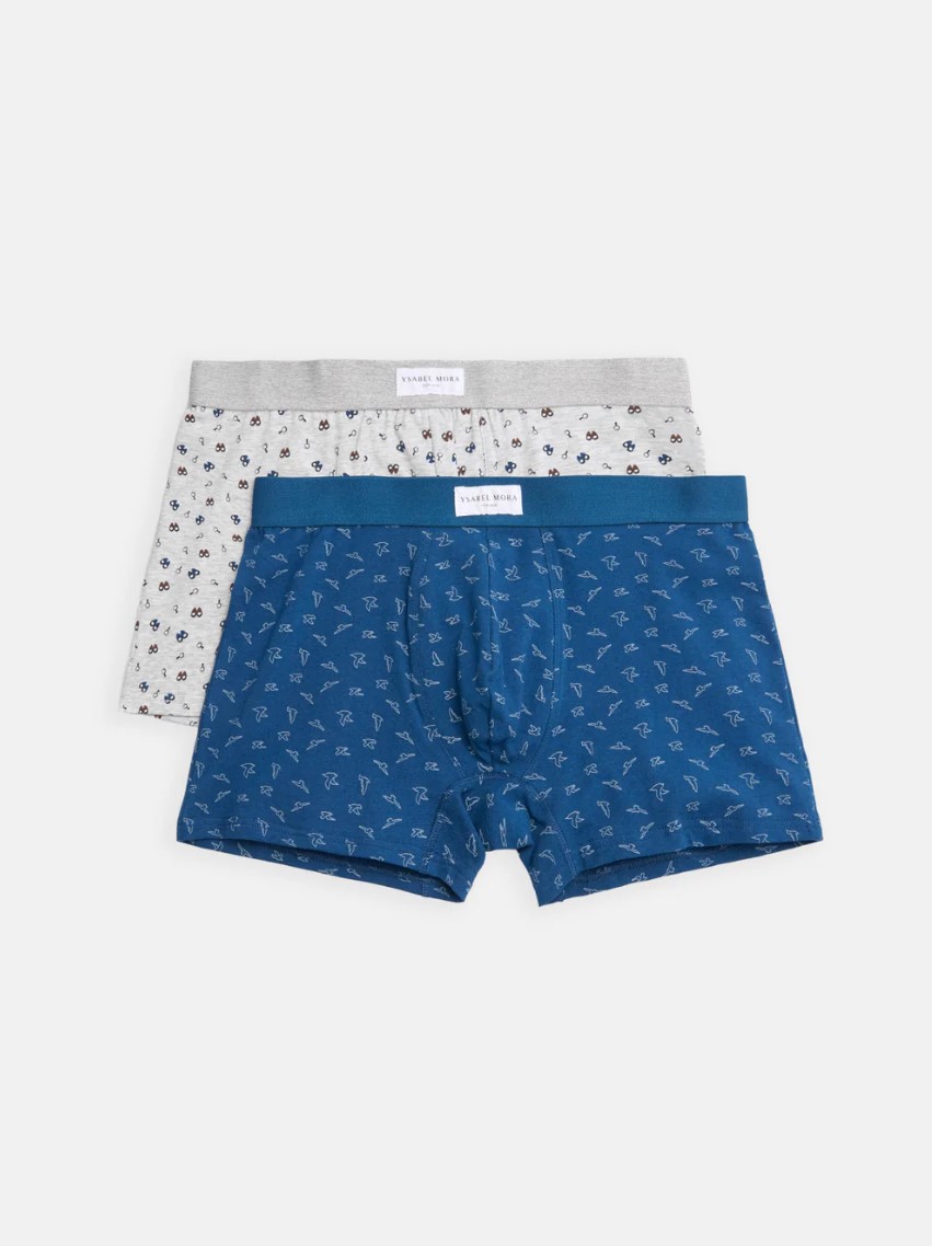 Набор из 2 боксёров с принтом из натурального хлопка с добавлением эластана для оптимального комфорта. Каждая пара трусов отличается цветом и принтом, что придаёт вашему гардеробу разнообразие и индивидуальность.