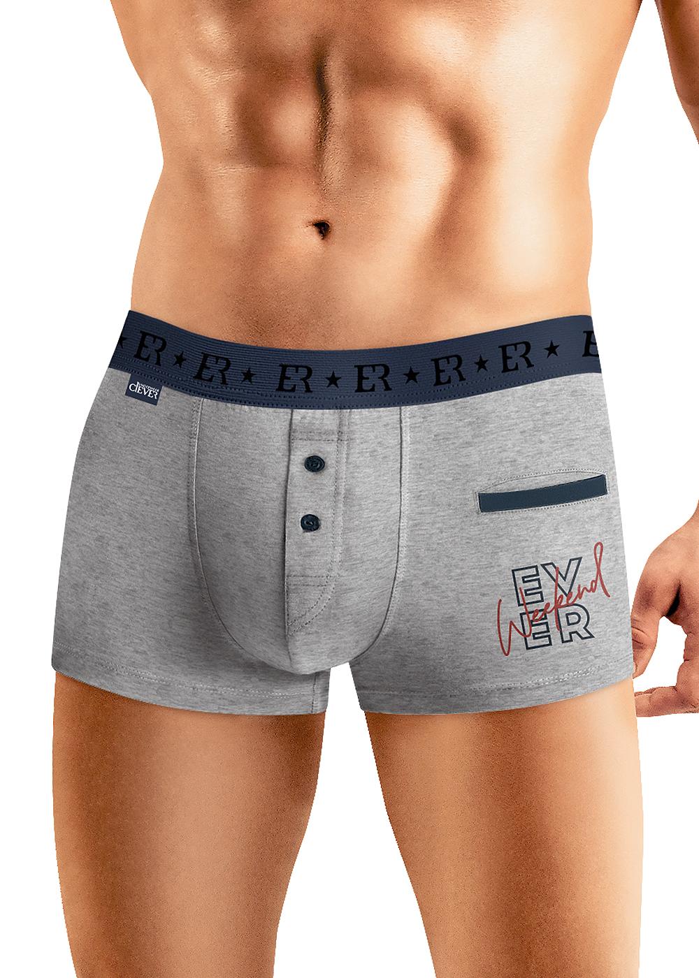 Шорты средней длины комфортной посадки выполнены из меланжевого полотна с имиджевым принтом по ножке. Трусы дополнены контрастной резинкой, карманом, пуговицами и жаккардовой нашивкой .
