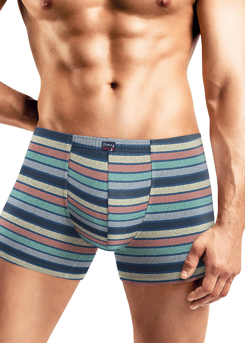 Шорты удлиненные комфортной посадки выполнены из оригинального полотна в авторскую горизонтальную полоску. Трусы дополнены стильным имиджевым логотипом.