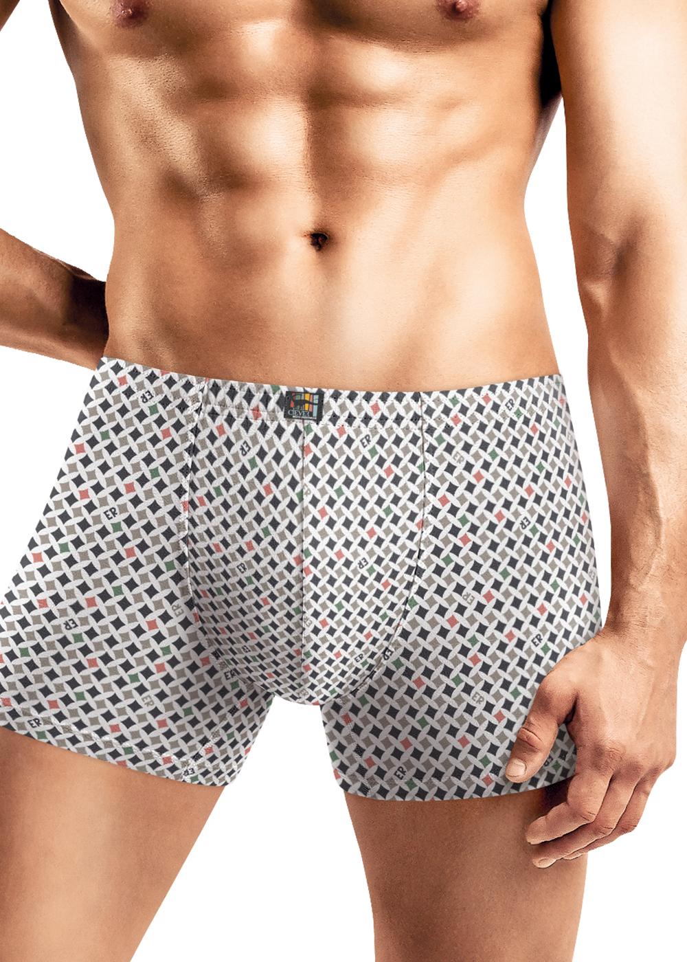 Шорты удлиненные комфортной посадки выполнены из оригинального полотна в мелкую графику. Трусы дополнены имиджевым жаккардовым логотипом.