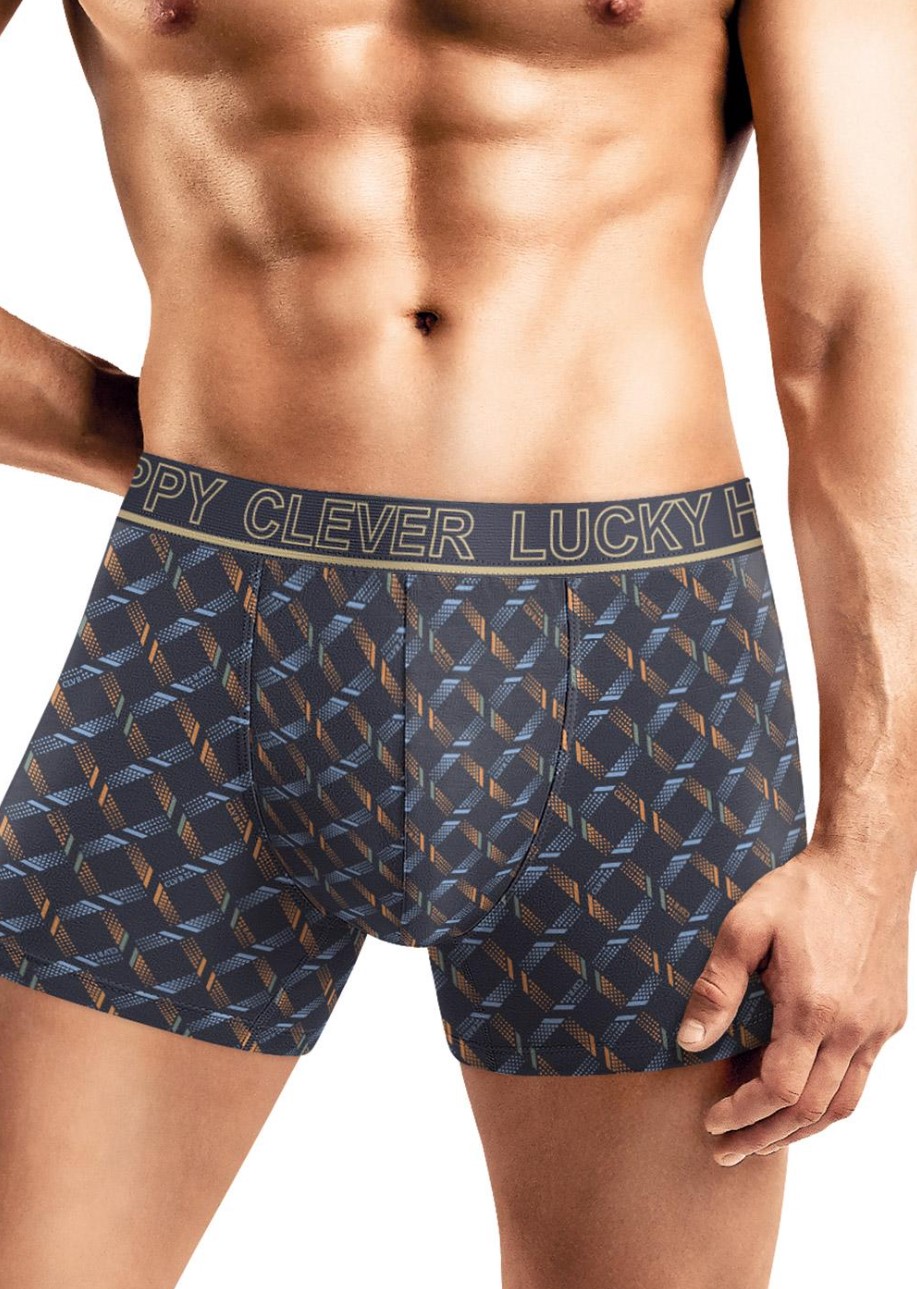Шорты удлиненные комфортной посадки выполнены из оригинального полотна в стильную графику. Трусы дополнены стильной жаккардовой резинкой с имиджевым логотипом.