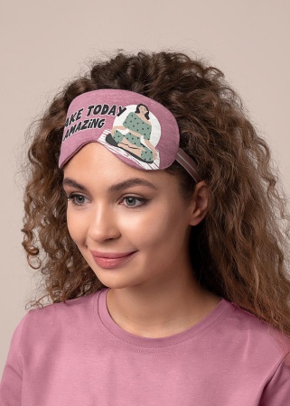 Маска для сна из трикотажного полотна дополнена принтом. Жаккардовая резинка сзади позволяет надеть маску на любой охват головы.