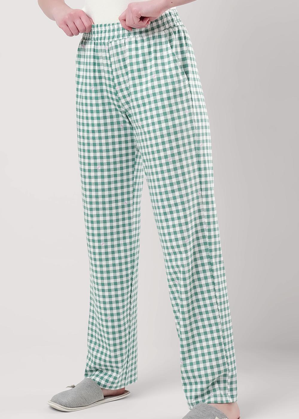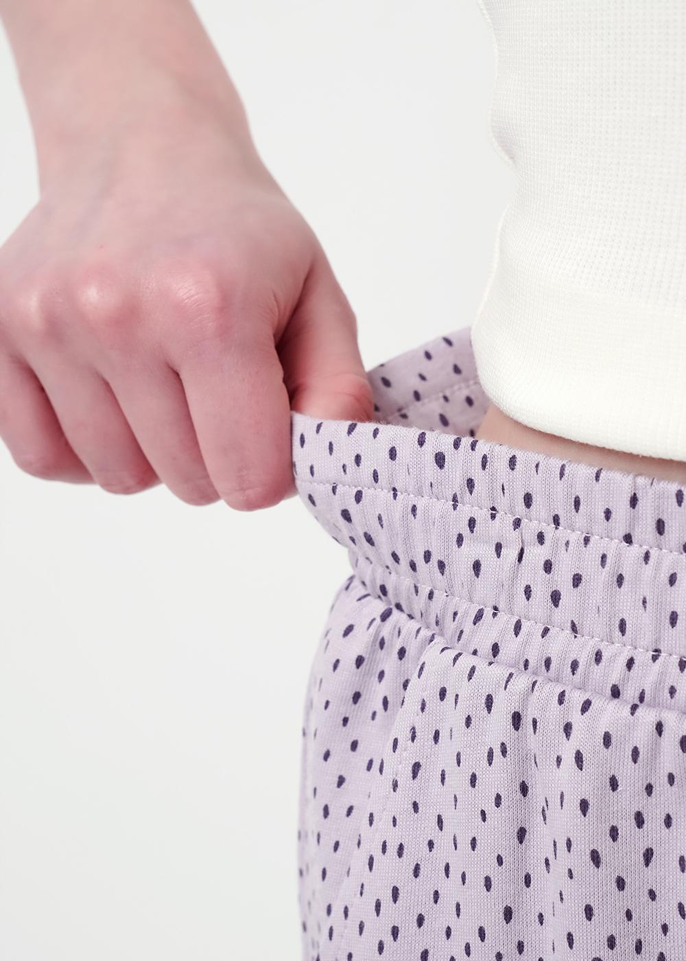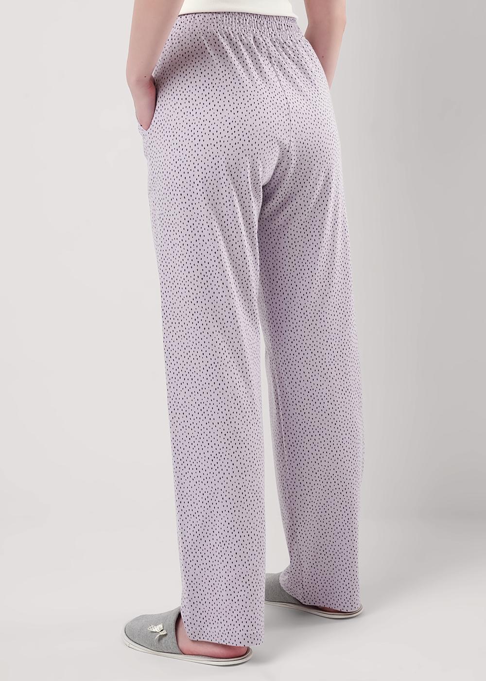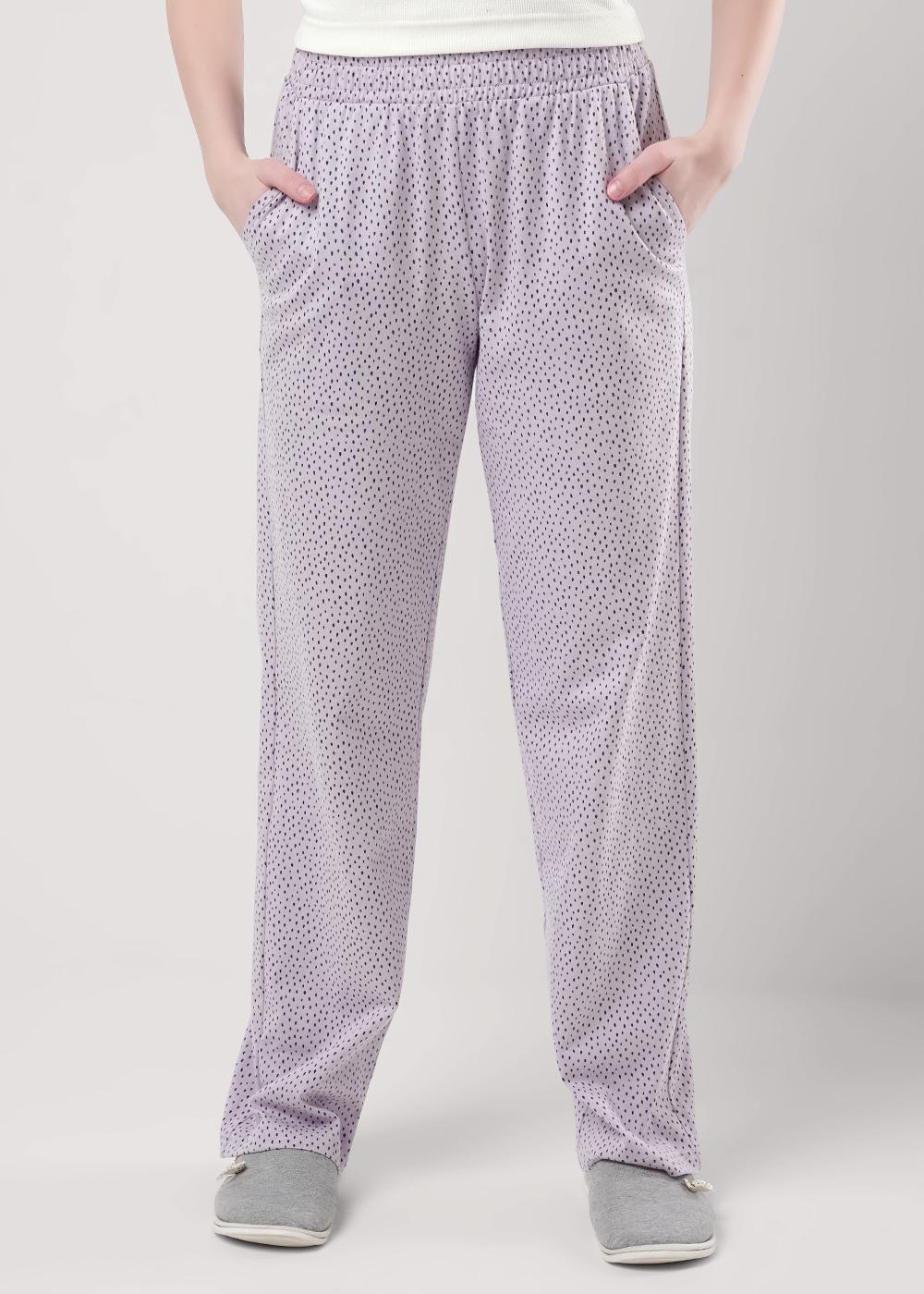 Брюки прямые для дома из хлопкового трикотажного полотна. Пояс на внутренней резинке, боковые карманы с отрезным бочком.