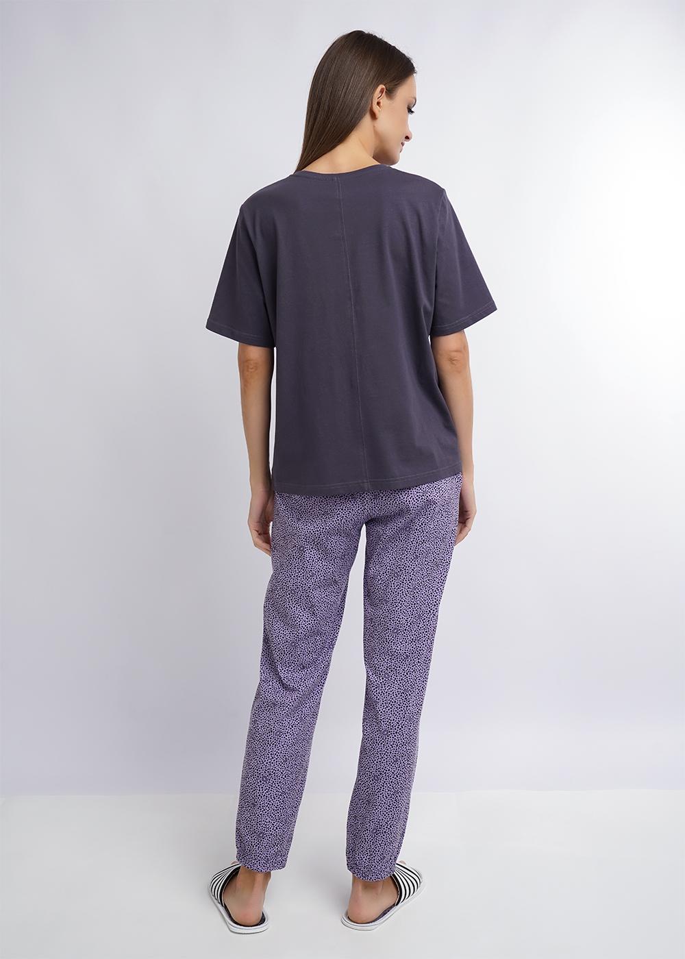 Домашние брюки из трикотажного полотна. Пояс на внутренней резинке. По бокам карманы. Снизу на резинке.