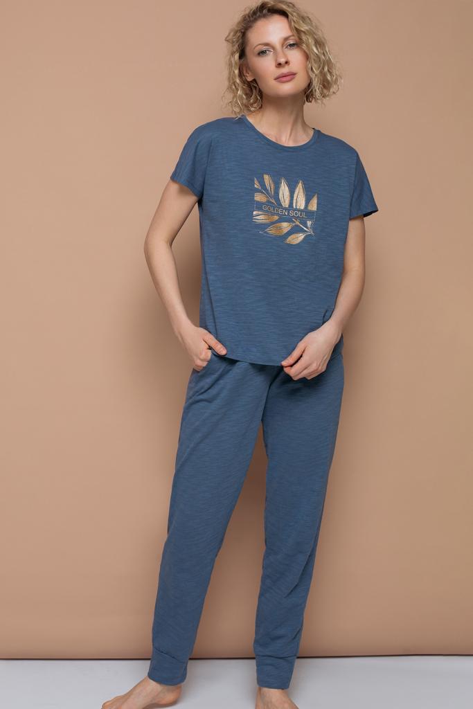 Женские брюки из трикотажа супрем. Пояс и манжеты выполнены из кашкорсе. Внутри пояса резинка и шнурок для регулировки по ширине. По бокам карманы.
