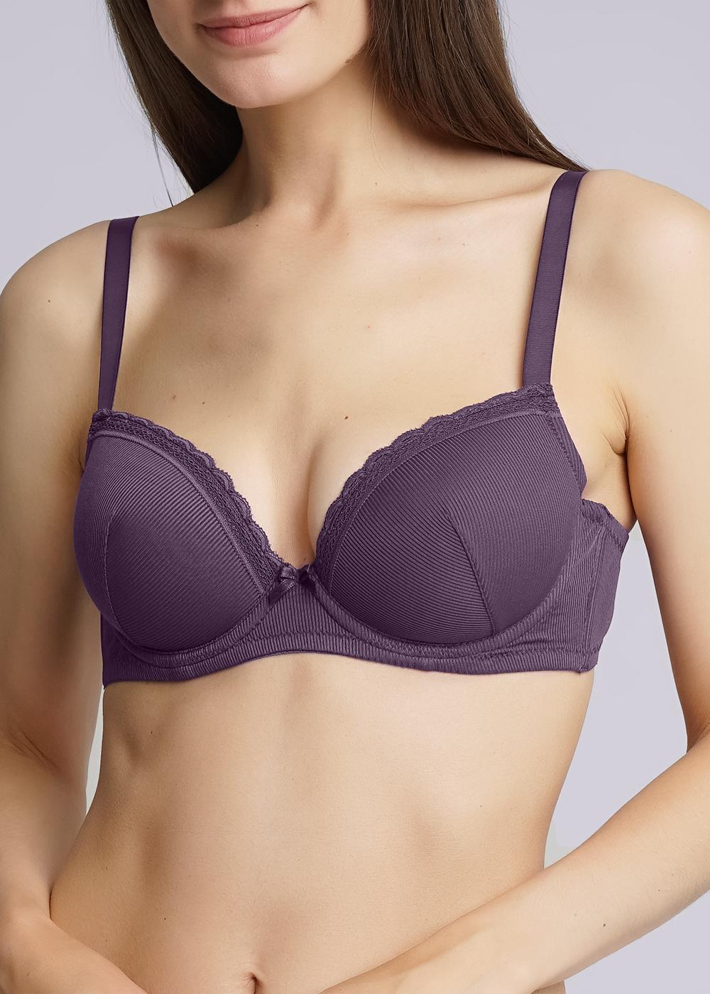 Бюстгалтер с формованной чашкой без push-up, с косточками. По верху чашки модель декорирвана кружевом.