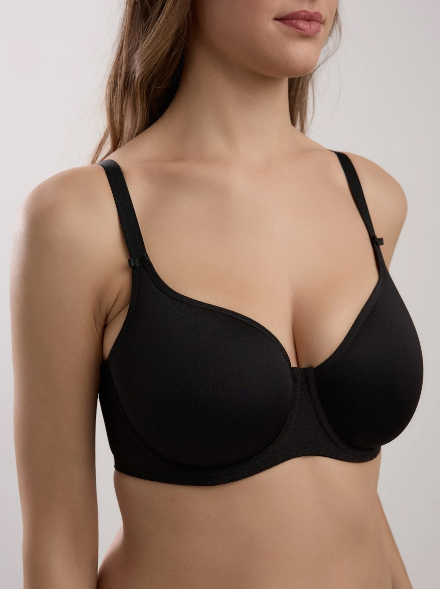 Этот бюстгальтер создан по технологии, при которой чашка имеет вывязанную структуру внутреннего слоя, благодаря чему полотно получается упругим и хорошо держит форму.Чашка каплевидной формы обеспечит надежную посадку и поддержку груди в области подмышечной впадины.Емкая чашка хорошо подойдет для женщин со средними и большими полотнами.Формованный спейсер создаст идеально округлую форму груди и при этом не добавит объем.Прямой стан на широкой застежке для уверенной посадки