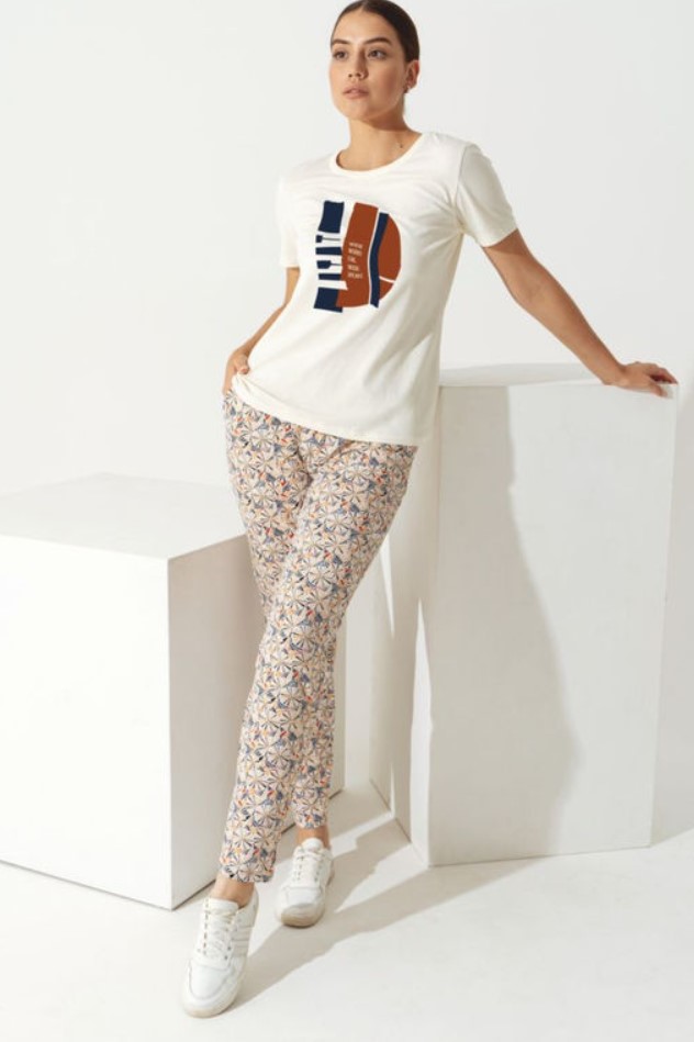 Классическая футболка полуприлегающего силуэта. Рукав короткий, втачной. Вырез горловины круглый. Футболка декорирована тематическим принтом коллекции.