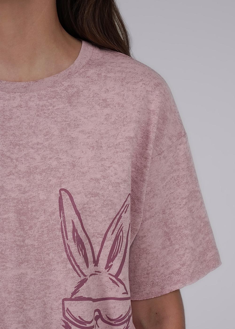 Футболка из хлопкового трикотажного полотна,прямого силуэта. Округлая горловина с обтачкой. Короткий рукав со спущенной линией плеча. Спереди и по рукаву принт. По низу рукава и изделия подгибка с открытым срезом.