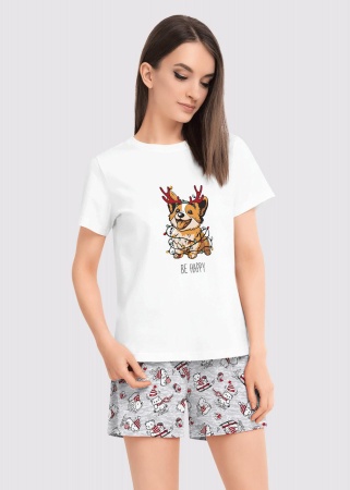 Футболка свободного кроя в молочном оттенке с тематическим принтом.