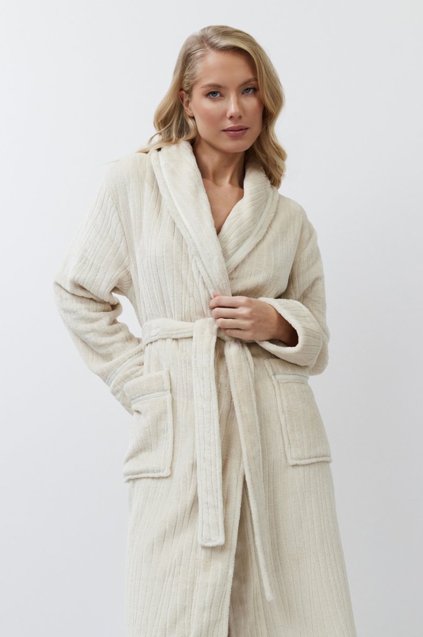 Расслабьтесь с комфортом в мягком халате LINETTE. Теплый халат с поясом. Длина ниже колен. Изготовлен из мягкой приятной к телу текстурированной ткани. Имеются два накладный кармана. Окутает и согреет вас в холодное время года. В нем вам будет тепло и уютно!
