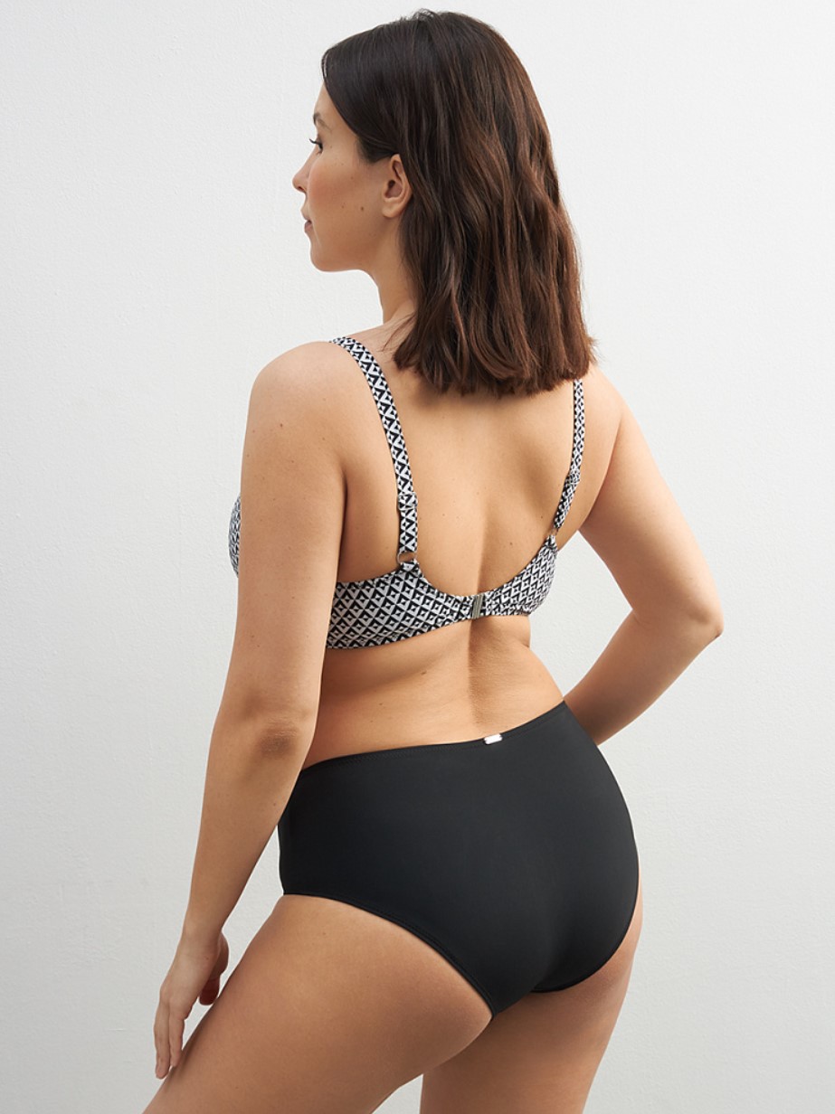 Раздельный купальник из микрофибры с графическим принтом. Материал быстро высыхает, приятно ощущается на теле, устойчив к воздействию хлора и ультрафиолета. Полностью на подкладке, не просвечивает.Лиф с мягкими чашками обеспечивает комфортную поддержку и подчеркивает естественную форму груди. Регулируемые бретели могут завязываться на шее. Трусы «бикини» со средней линией талии и классическим вырезом эффектно подчеркивают бедра.Стильный и удобный купальник с акцентным рисунком, который будет эстетично смотреться на пляже или в бассейне.